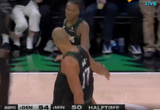 第二节比赛结束,掘金54-50领先森林狼。